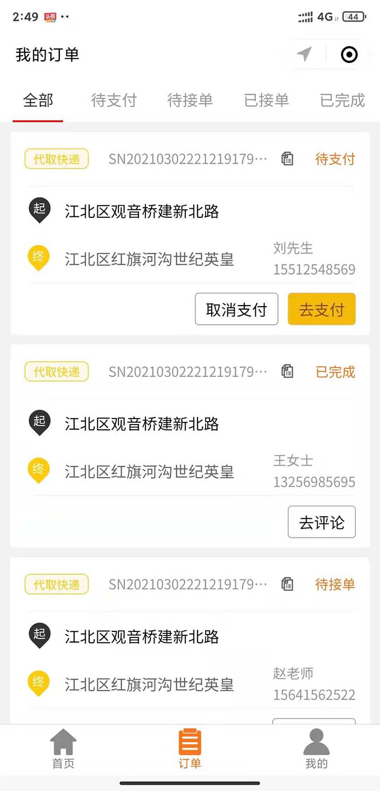 校园跑腿 校园跑腿微信小程序 校园跑腿项目简介 跑腿,针对于某一件需要解决或者完成的事,当事者不愿意或者没时间、精力去做,继而将这件事托付给另一方去解决或者完成的过程。而校园跑腿,自然就是限定了范围的跑腿服务。 可以说大学生宅的现象,近年来也日趋加剧,如果没有课,学霸们会呆在图书馆里,活跃分子则忙于各个社团活动,而那些不怎么学也不忙社团的人,大都宅在宿舍里。 特别是冬天的晚上,基本每个人都不愿意出门买东西,而须要买东西又不愿意的人,你就可以拿点跑腿费帮帮他们,跑腿业务就这么来了。 案例部分图片展示