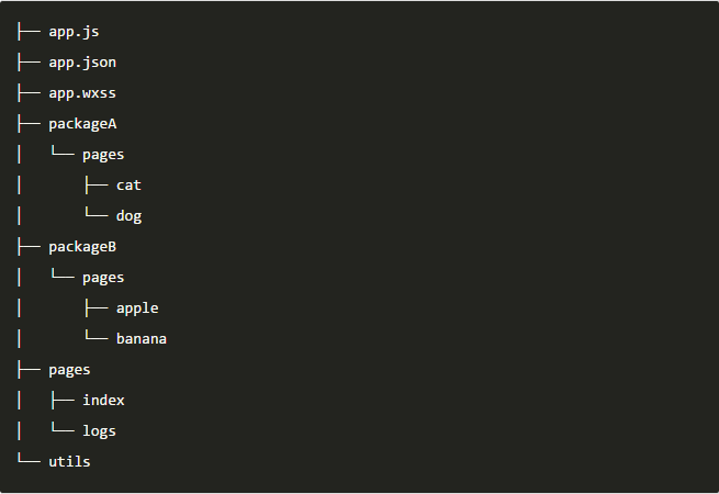 假设支持分包的小程序目录结构如下: