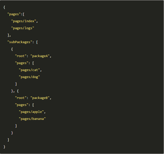 开发者通过在 app.json subPackages 字段声明项目分包结构: