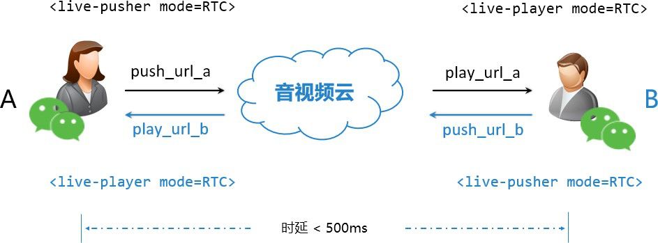 小程序的 RTC 模式解决了双向或者多人实时音视频通话在终端所需要的各项技术组件,但是通话线路本身可能也会引入很高的延时,所以要确保视频通话的 A 和 B 双方所使用的 rtmp 线路要有很低的时延。